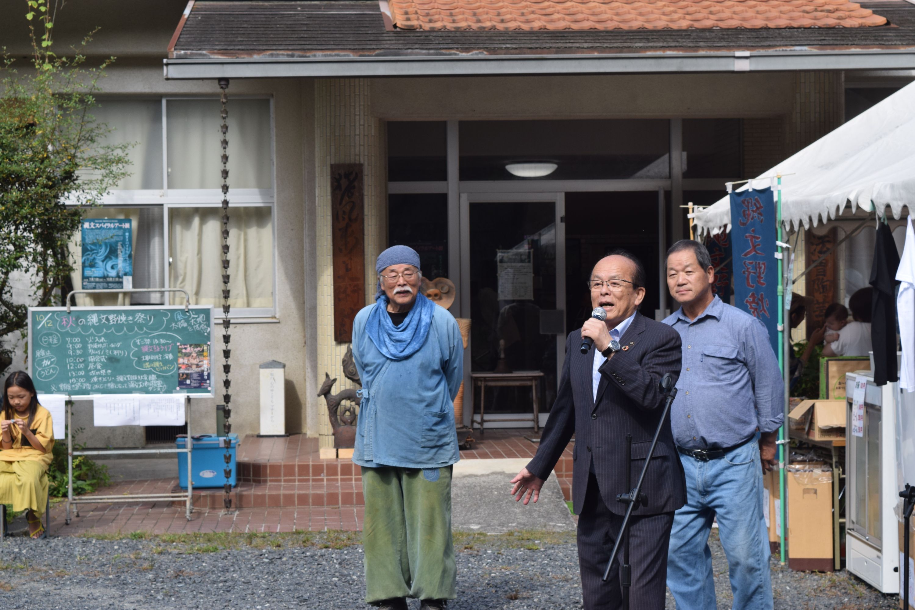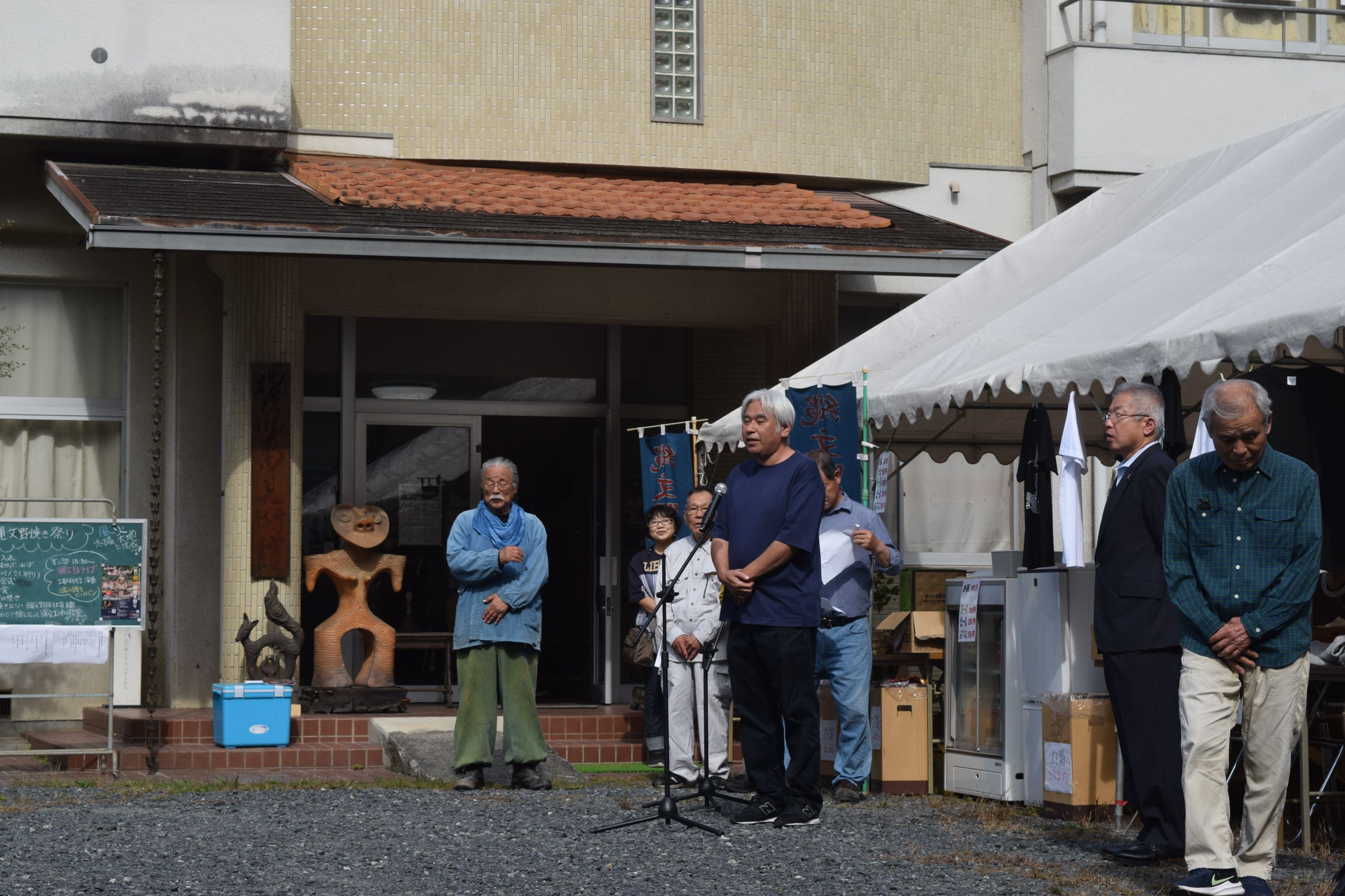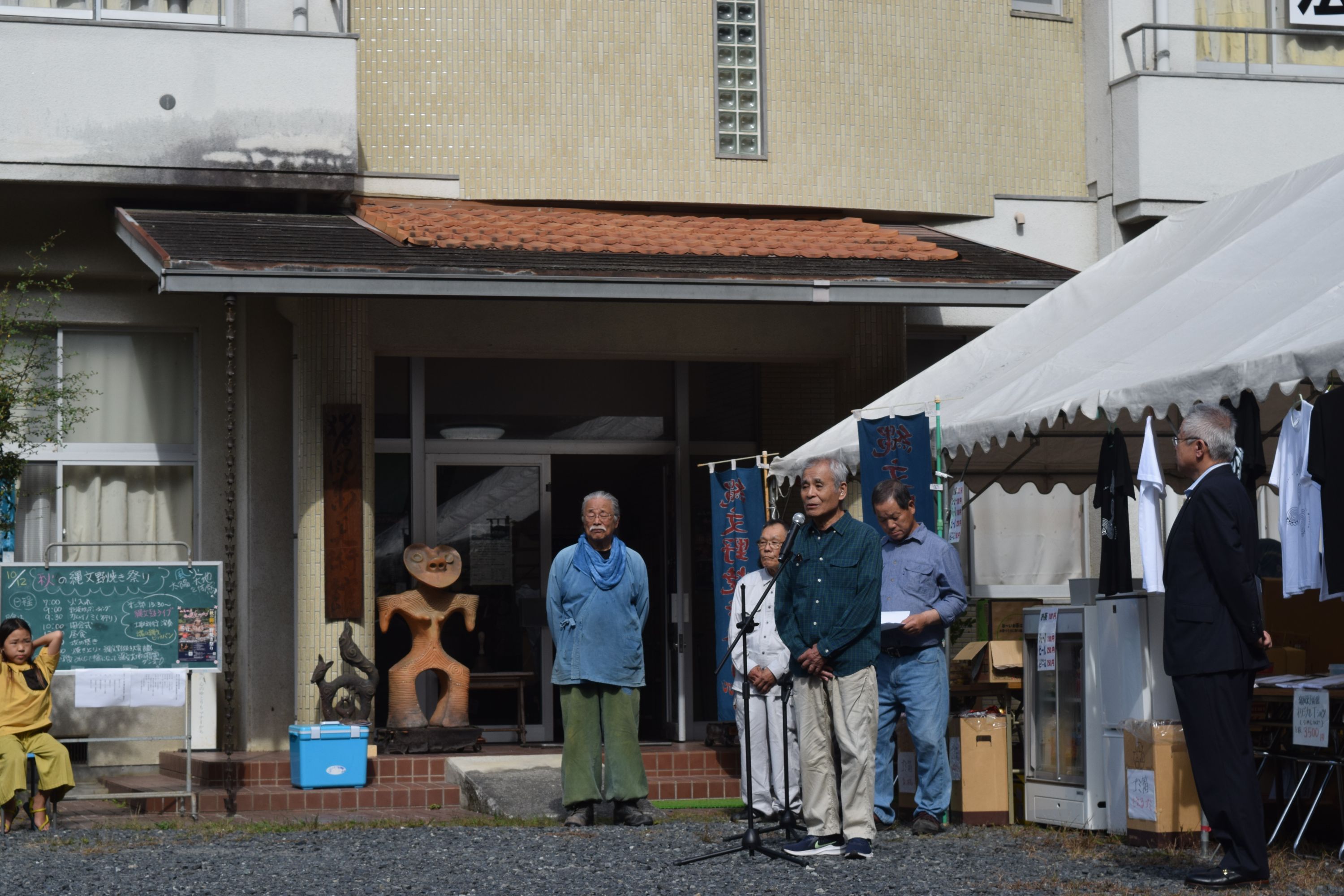 開会式では法曽焼同好会小林会長や新見市教育長、猪風来美術館後援会奥津会長のご挨拶がありました。石田新見市長も駆けつけてくれ激励の言葉をいただきました。