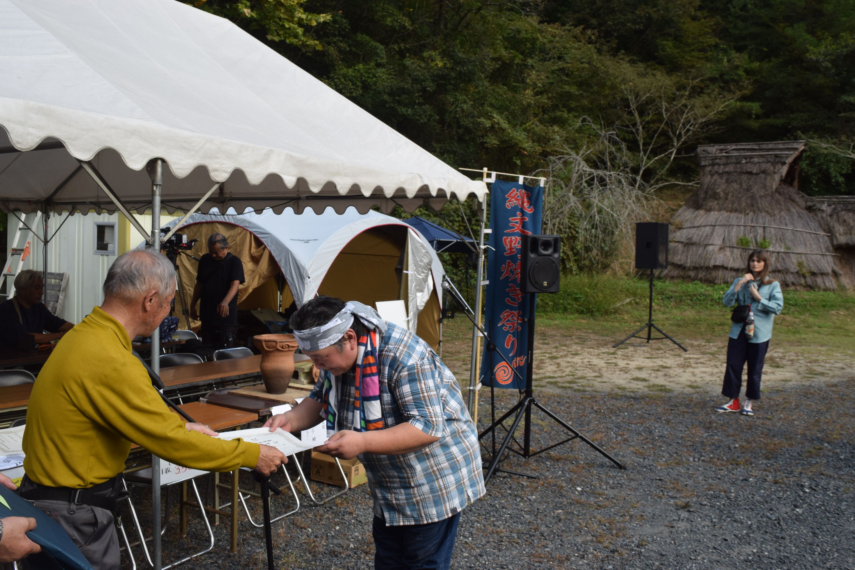 焼き上がった作品の中から、縄文野焼き大賞など4賞が選ばれ、表彰されました。